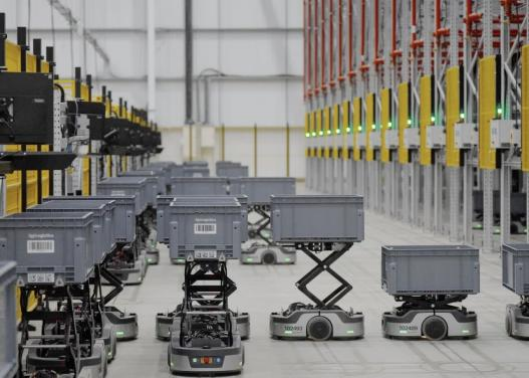 在英国米尔顿凯恩斯,京东启用了首个海外智狼仓,部署了近200台自动化设备。通过“货到人”模式,拣货和出库效率提升了约4倍。