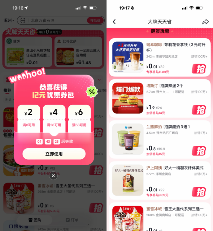 他告诉我们这是抖音新推出专做团购的独立App,平台会发优惠券。