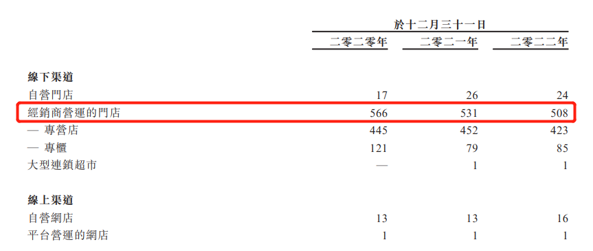 受疫情影响,澜沧古茶的经销商营运门店数量从2021年的531家减少至2022年的508家,2022年关店23家。