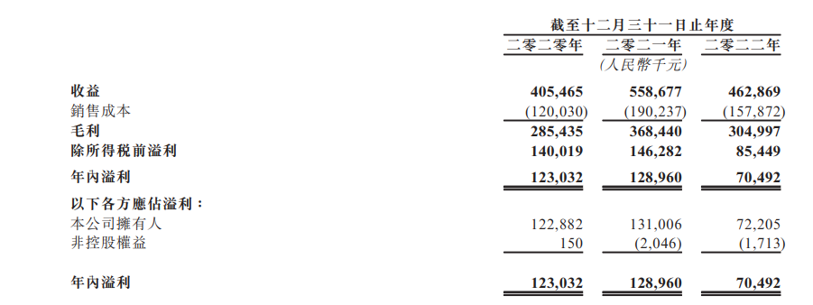 招股书显示,2020年-2022年,澜沧古茶的收入分别为4.05亿元、5.6亿元、4.6亿元;年内溢利分别为1.2亿元、1.3亿元、7049.2万元。