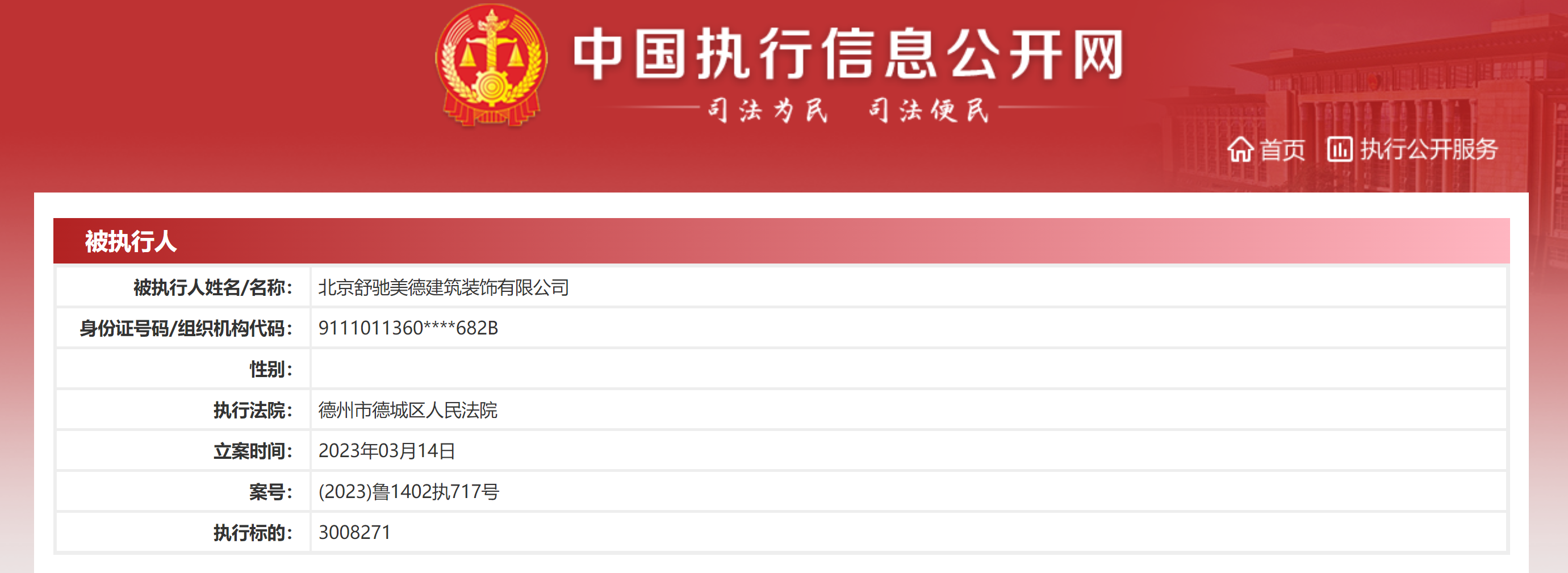乐居财经 3月17日消息,北京舒驰美德建筑装饰有限公司(以下简称“舒驰美德”)新增一则被执行人信息。