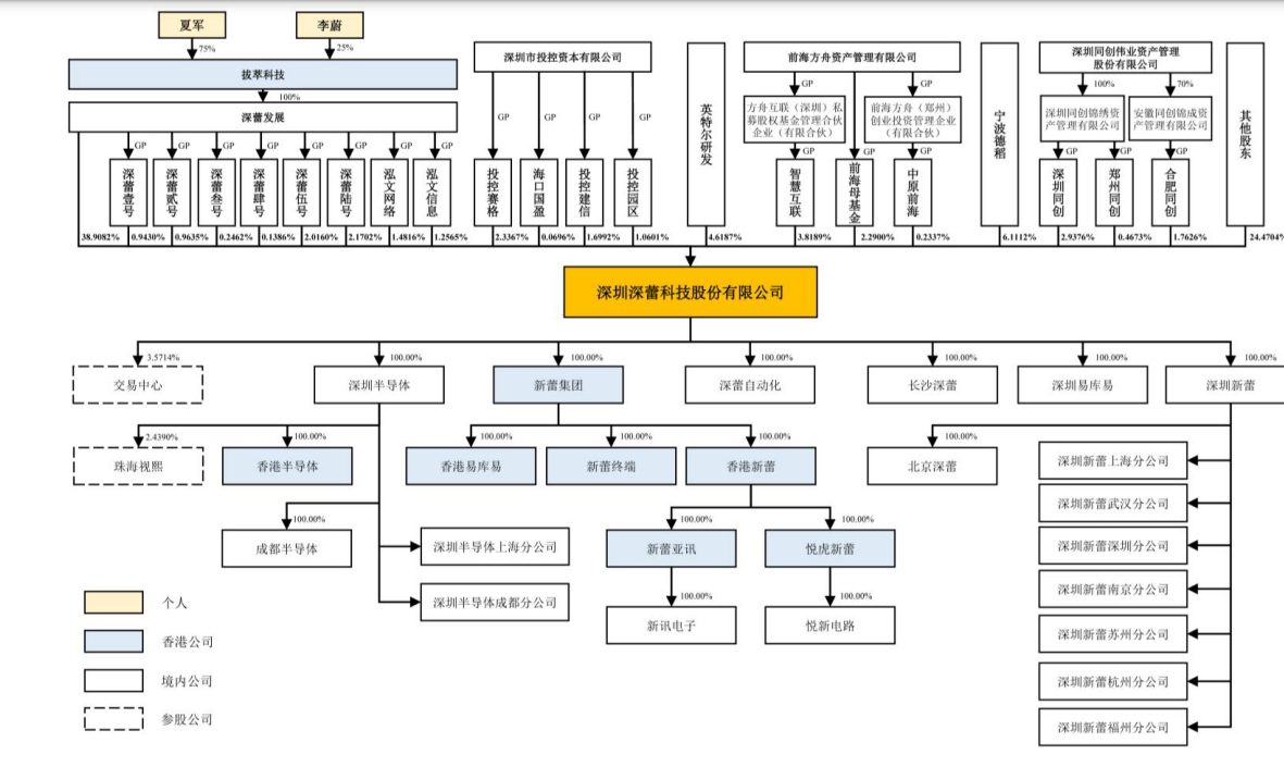 报告期内,深蕾科技经历七次股权转让及四次增资。截至招股说明书签署日,深蕾科技共有33名机构股东,无自然人股东。深蕾发展直接持有发行人6602万股股份,占总股本38.9%,为公司控股股东。