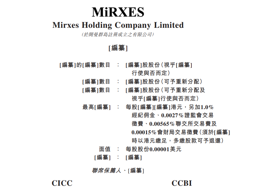 乐居财经 李兰 7月25日,Mirxes Holding Company Limited(以下简称“觅瑞集团”)向港交所主板递交上市申请,中金(CICC)、中信银行国际(CCBI)为其联席保荐人。