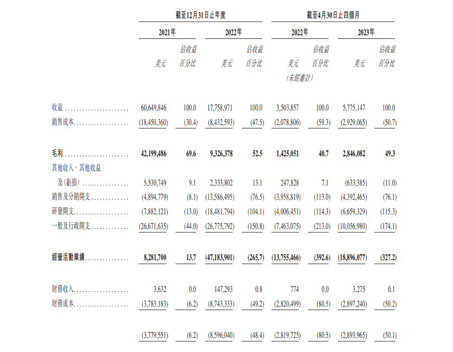 业绩方面,截至2021年、2022年12月31日止年度以及截至2023年4月30日止四个月,觅瑞集团实现收益分别为6064.98万美元、1775.90万美元、577.51万美元。期内亏损约308.11万美元、5620.27万美元、2158.71万美元。