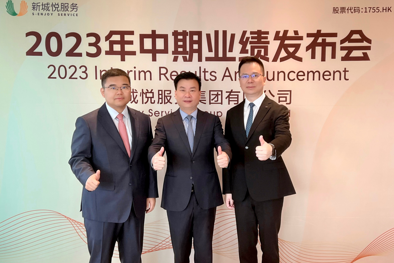 8月28日上午十点,新城悦服务(01755.HK)以线上、线下相结合的方式,举行了2023年中期业绩发布会。新城悦服务董事长兼首席执行官戚小明、首席财务官左卫、首席战略官尤建峰等出席了会议。