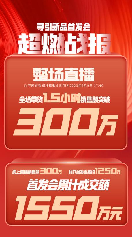 值得一提的是,寻引·万寻正式发布当天,同时采用了专业主播直播带货、“无介商城”电商平台同步上架的线上营销方式,于线上首发两小时,即取得了线上销售突破300万元的好成绩。另外,在首发当天,寻引新品一经发布即受到各地经销商的热烈追捧,现场认购签约金额达1250万元。首发会当天累计成交超1500万元。