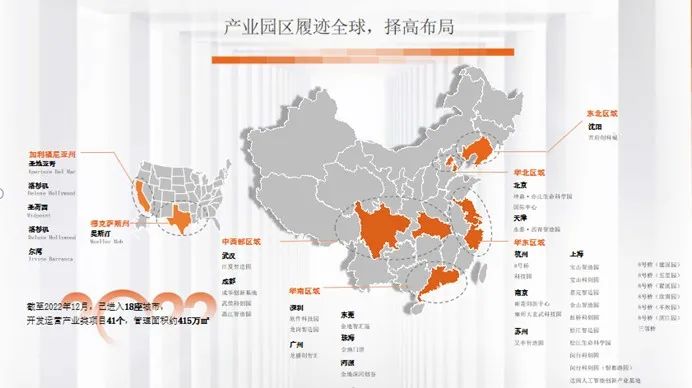 截至2022年12月,金地产业园已进驻18座城市,开发运营产业类项目41个,管理面积约415万平方米。