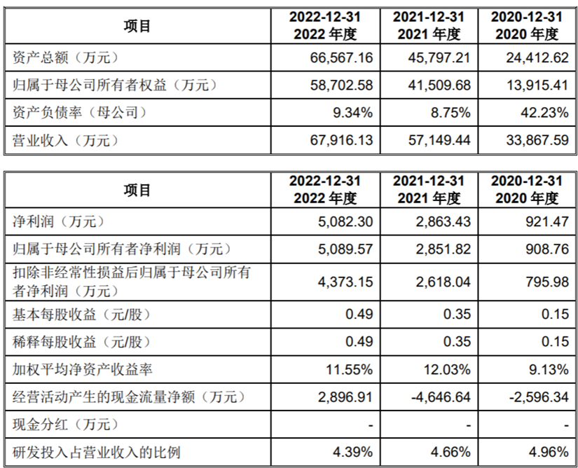 业绩方面,2020年、2021年、2022年(以下简称“报告期内”),株洲科能营业收入分别为3.39亿元、5.71亿元、6.79亿元;净利润分别为921.47万元、2863.43万元、5082.30万元。