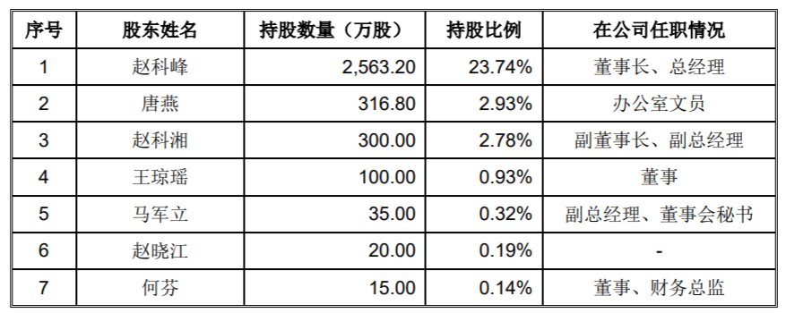 综上,赵科峰、唐燕夫妇直接和间接控制公司股份比例合计为61.05%,系公司共同实际控制人。此外,赵科峰弟弟赵科湘、妹妹赵晓江分别持有公司2.78%、0.19%股份,其与赵科峰、唐燕构成一致行动关系,因此,赵科峰、唐燕及其一致行动人合计控制公司64.01%的股份。
