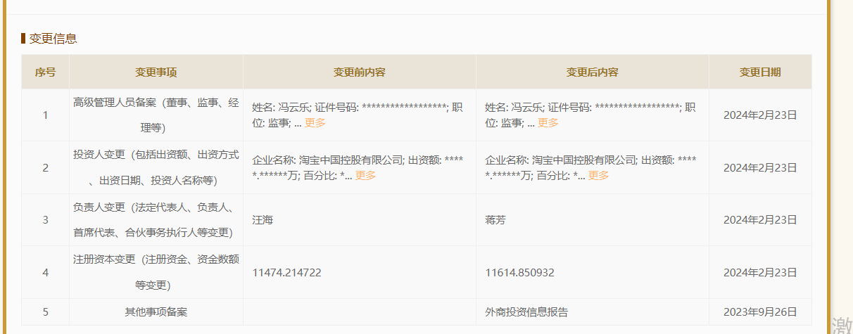 乐居财经 李兰 2月23日,阿里旗下多家公司发生工商变更。