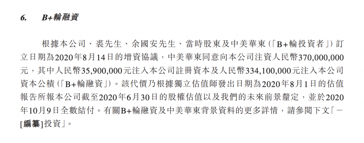 荃信生物另一笔较为重要的融资发生在2020年8月,引入中美华东作为B+轮投资者,中美华东向荃信生物注资3.7亿元,成为荃信生物的第二大股东。
