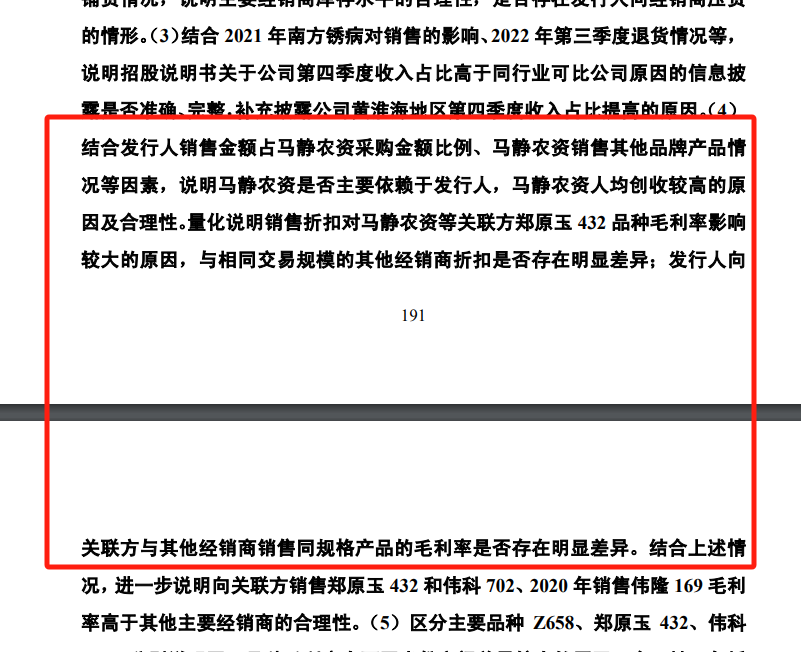 2022年度,马静农资的郑原玉432毛利率较其他经销商高28.56个百分点,主要为2021-2022经营年度的预计折扣率高于实际折扣率。