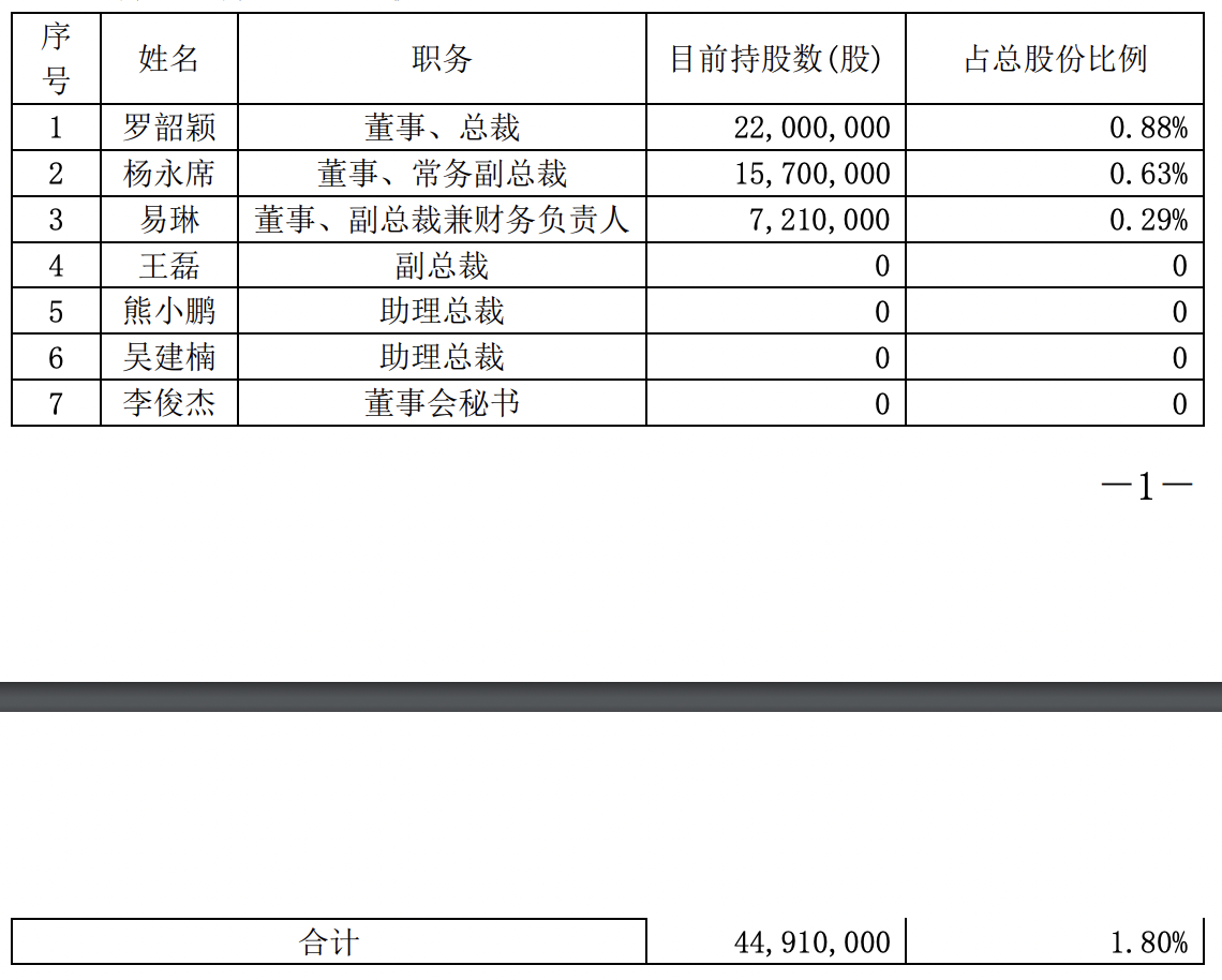 据悉,本次计划增持主体为董事及高级管理人员罗韶颖、杨永席、易琳,非董事高级管理人员王磊、熊小鹏、吴建楠、李俊杰。本次增持计划实施前,上述增持主体持有公司股份具体如下: