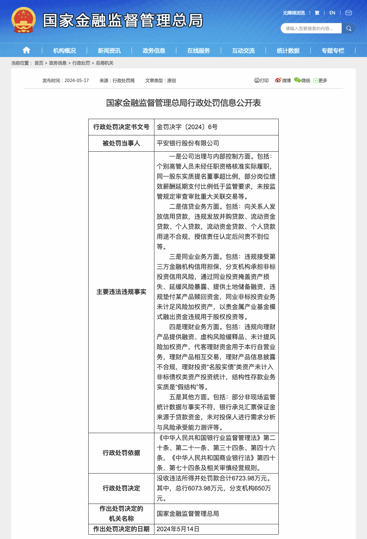 平安银行获罚6724万元,涉公司治理及信贷业务等多方面违规