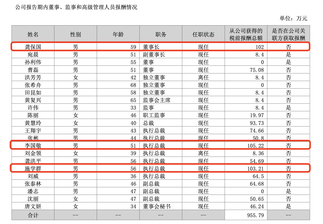 薪酬方面,2023年延华智能董事长龚保国的年薪为102万元,另外两名执行总裁李国敬、施学群的年薪分别为105.22万元、103.21万元。