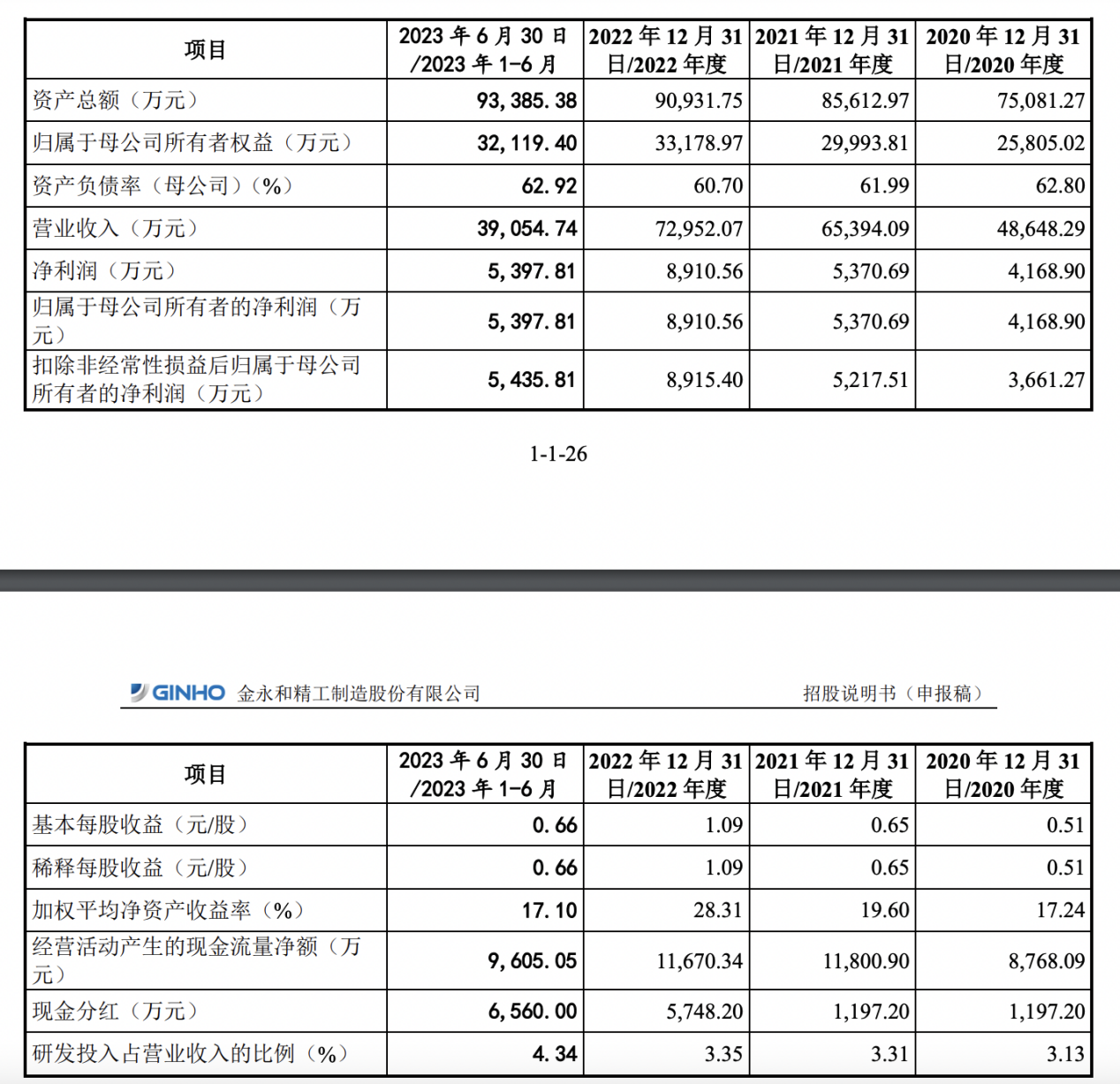 2020年-2022年及2023年上半年,金永和实现营业收入分别为4.86亿元、6.54亿元、7.30亿元和3.91亿元,归属于母公司所有者的净利润分别为4168.90万元、5370.69万元、8910.56万元和5397.81万元。