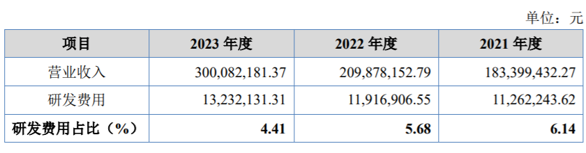 报告期内,楚大智能的研发费用分别为1126.22万元、1191.69万元和1323.21万元,占营业收入比例分别为6.14%、5.68%和4.41%。