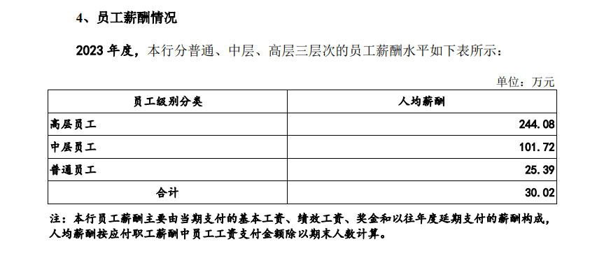 此外,员工薪酬方面,2023年度,高层员工人均薪酬244.08万元,中层员工人均薪酬101.72万元,普通员工人均薪酬30.02万元。