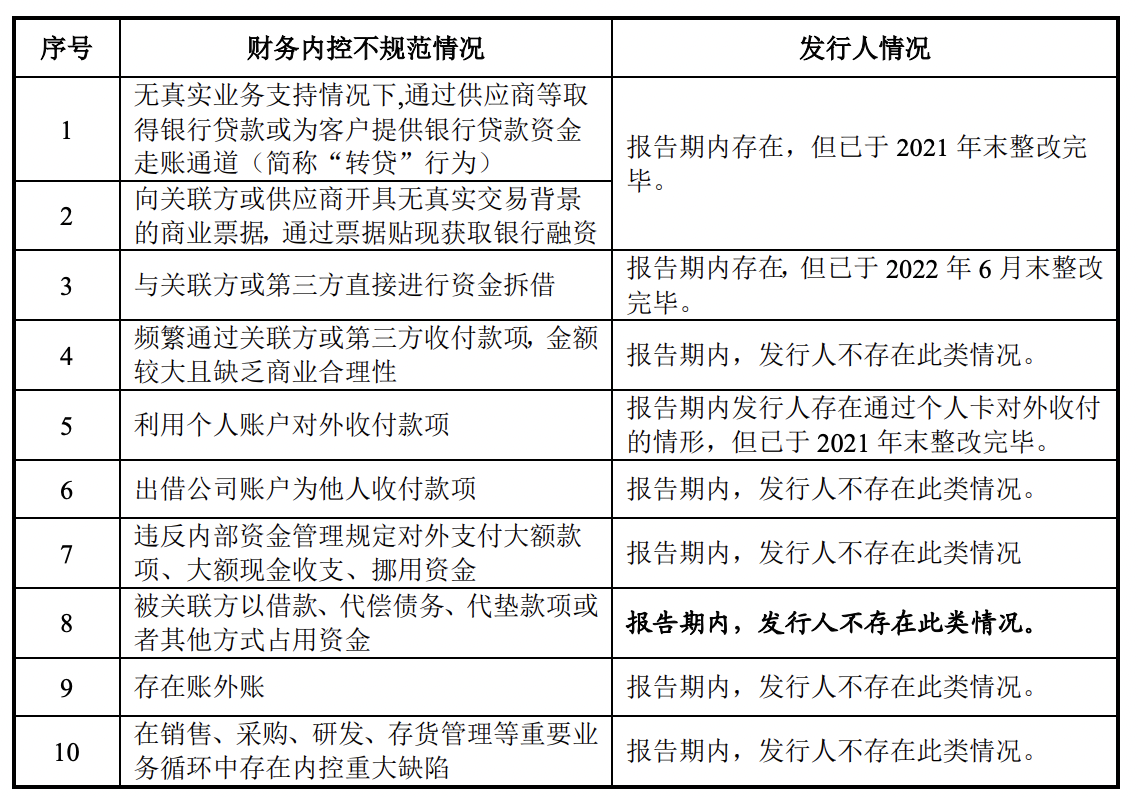 对此,上交所要求海阳科技:对照《监管规则适用指引—发行类第5号》,说明报告期内公司财务内控不规范的情形及后续整改情况;公司内部控制制度是否健全且被有效执行。