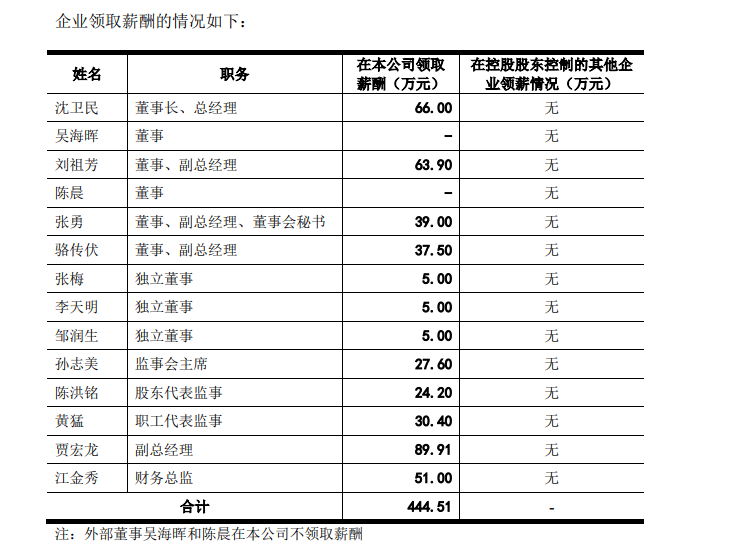 麦驰物联董事长、总经理为沈卫民,2022年度,沈卫民从公司领取薪酬为66万元,低于副总贾宏龙。