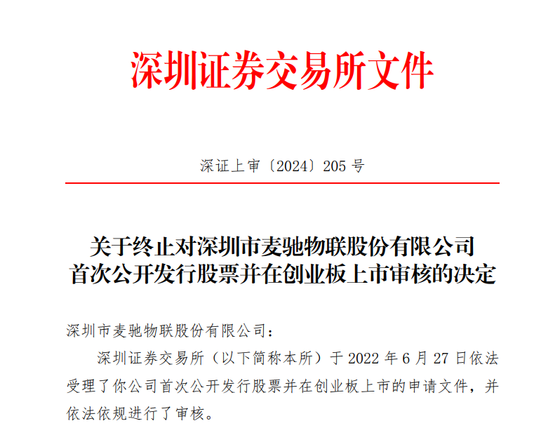瑞财经 李兰 7月8日,深圳市麦驰物联股份有限公司(以下简称“麦驰物联”)深市创业板IPO终止,因其及保荐人华英证券撤回发行上市申请。会计师事务所为立信会计师事务所(特殊普通合伙)。