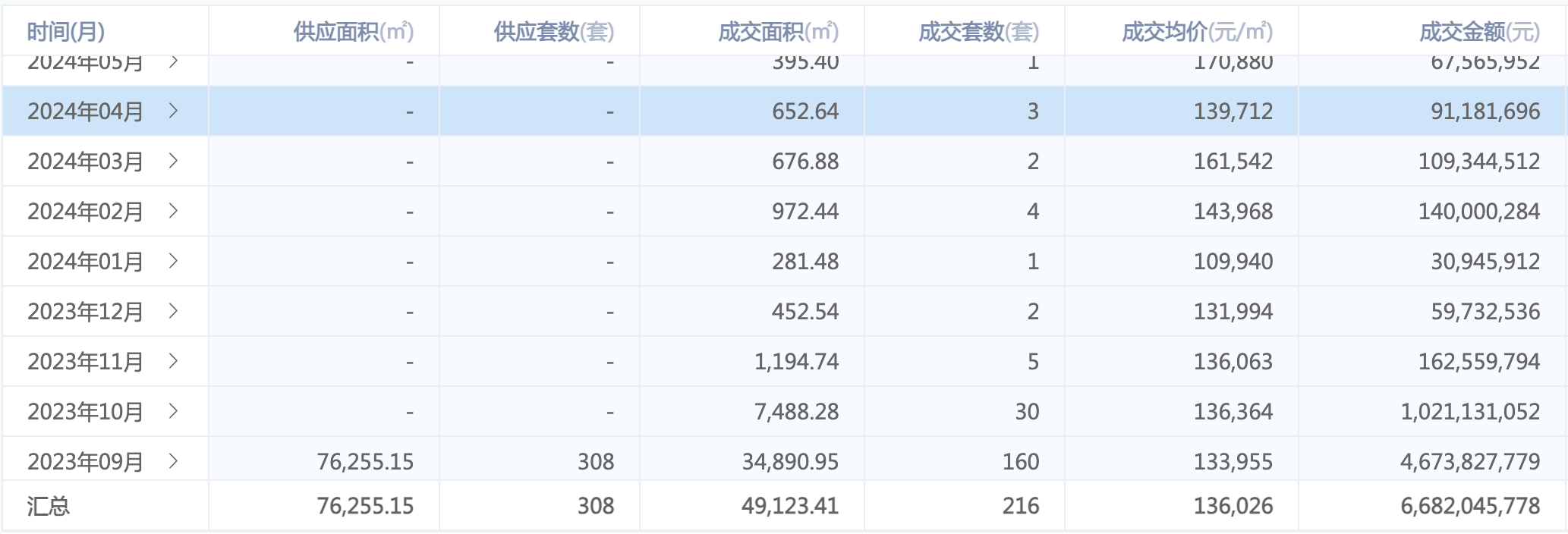 去年9月25日,该项目308套超高层房源首开,主力建面189-283㎡三房、四房,以及少量279-598㎡云端大平层。截至目前,已成交216套,均价约13.6万/㎡,去化率超70%。