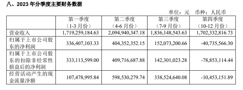 2023年四季度,固德威实现营收17.02亿元,归母净利润-4073.56万元,期内经营活动产生的现金流量净额为-1045.32万元。不过,公司前三季度的利润弥补了第四季度的亏空。