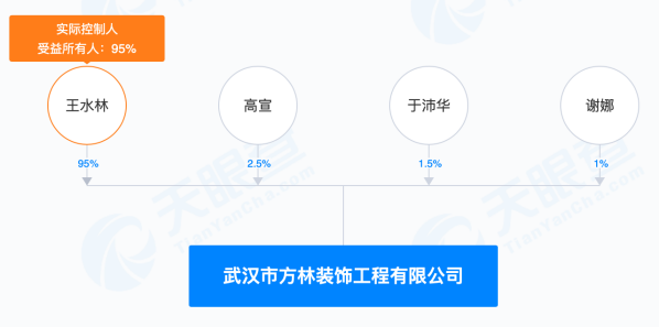 目前在辽宁、安徽、武汉、重庆等多地都有方林装饰的分公司,而从这些公司的股权架构来看,王水林往往在其中持有绝大多数股权。