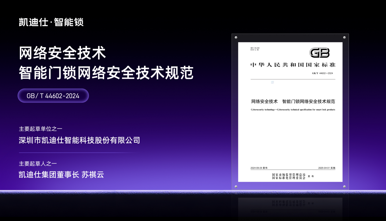 智能锁行业迎最新国家标准,凯迪仕参与主要起草,引领多层次标准创新高!