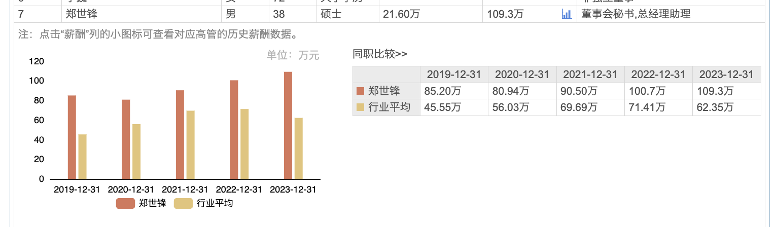 据瑞财经查阅,新乳业董事会秘书为38岁郑世锋。2019年至2023年,他的薪酬为85.2万元、80.94万元、90.5万元、100.7万元及109.3万元。