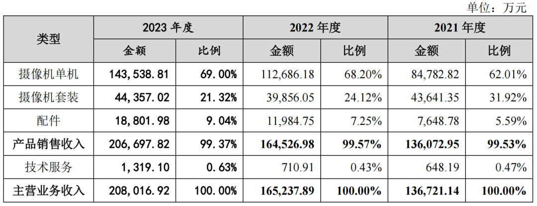睿联技术主要从事家用视频监控产品软硬件的研产销,通过自主品牌“Reolink”销售摄像机单机、摄像机套装、配件及少量技术服务等,主营业务收入突出,占比100.00%。