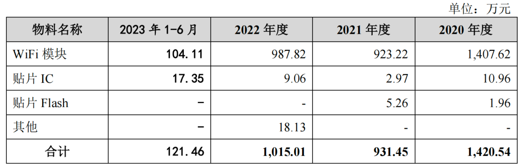 利尔达为睿联技术的供应商,为其提供WiFi模块,贴片IC以及贴片Flash,2019年-2023年上半年,睿联技术向利尔达的采购金额分别为703.35万元、1420.54万元、931.45万元、1015.01万元,121.46万元,累计4191.85万元。