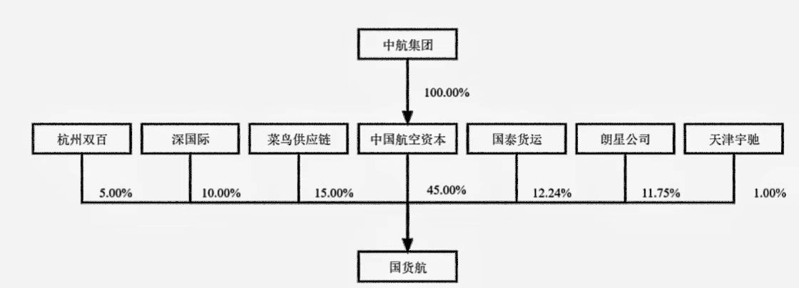 上市后,中国航空资本直接持有国货航40.05%股权,为其控股股东;中航集团为其实际控制人。