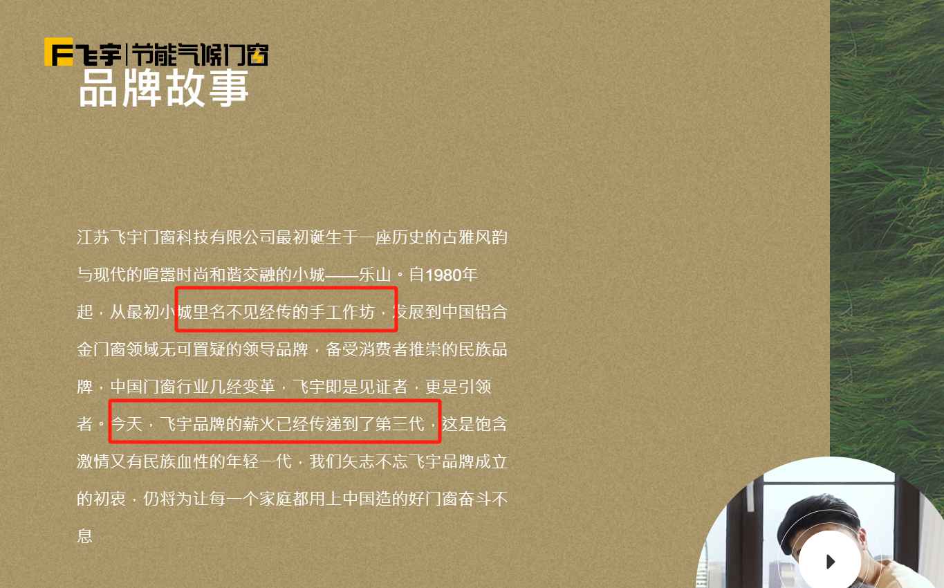 飞宇门窗传承至第三代从手工作坊发展而来,曾遭质量投诉