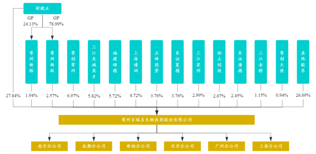 截至招股说明书签署日,舒晓正直接持有百瑞吉27.84%的股份,并通过常州新跃、常州新栎控制公司 4.51%股份对应的表决权,合计控制公司 32.36%股份对应的表决权,为百瑞吉的控股股东、实际控制人。