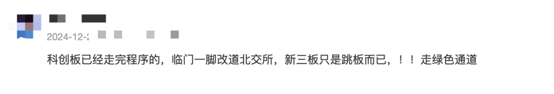 对于百瑞吉一系列紧凑的操作,在股吧,有投资者提出质疑“百瑞吉在创新层挂牌才2个月。不是说要满一年吗?”、“这么急申报有什么意义?等年报出来申报不香吗?年报不理想?”另有投资者回复表示“(百瑞吉)科创板已经走完程序的,临门一脚改道北交所,新三板只是跳板而已,!!走绿色通道。”