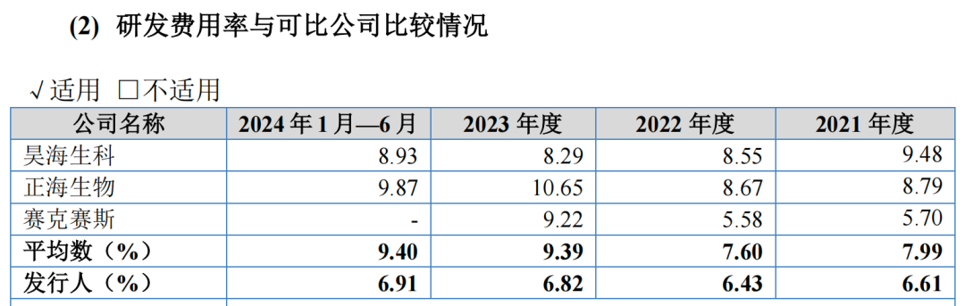 报告期各期,其研发费用率分别为6.61%、6.43%、6.82%,6.91%,同期销售费用率34.51%、38.77%、33.13%、30.85%,将大量的资金投入在营销上,而对产品研发的投入远远不及。