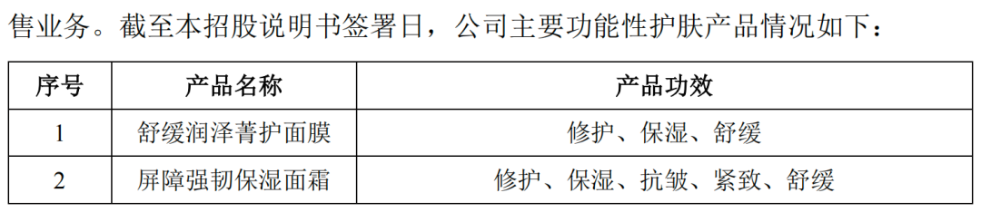 百瑞吉的功能性护肤品主要是两款含透明质酸功能性衍生物的功效护肤品。其中,舒缓润泽菁护面膜的功效为修护、保湿、舒缓;屏障强韧保湿面霜的功效为修护、保湿、抗皱、紧致、舒缓。