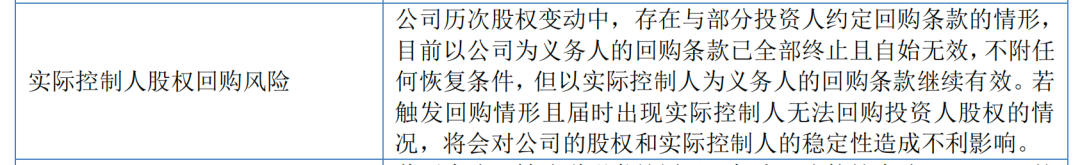 如果触发回购条款。届时出现实际控制人无法回购投资人股权的情况,将会对公司的股权和实际控制人的稳定性造成不利影响。