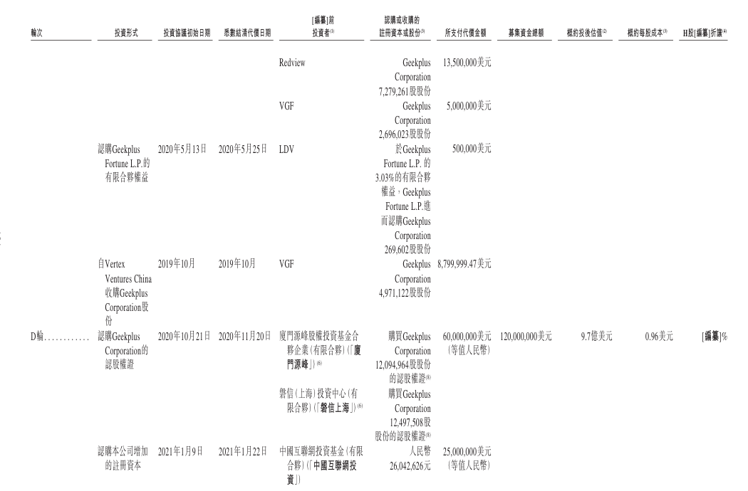 此后六年中,华平投资、CPE、Granite Asia、云晖资本、D1、中信产业基金、中网信通、汇鸿集团、秉源投资、赛领资本、伊利、英特尔、华平投资、蚂蚁集团等陆续参与了极智嘉的融资。
