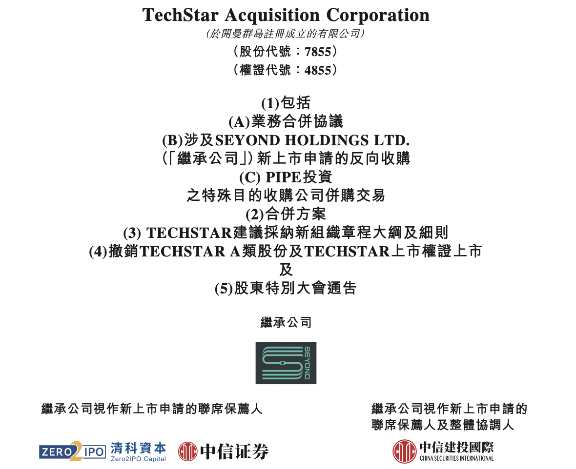 2月12日,图达通控股有限公司(以下简称“图达通”,Seyond Holdings Ltd)拟通过借壳香港SPAC公司TechStar Acquisition Corporation(以下简称“TechStar”,07855.HK)上市,清科资本、中信证券及中信建投国际担任联席保荐人。