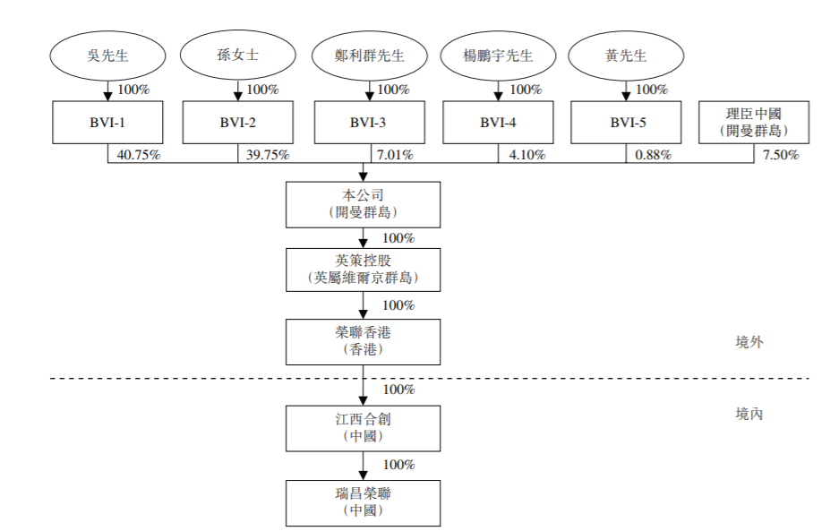 股权方面,吴海荣持股40.75%、孙亚平持股39.75%、郑利群持股7.01%、杨鹏宇持股4.1%、黄建杭(前称黄小子)持股0.88%、理臣中国7.5%。