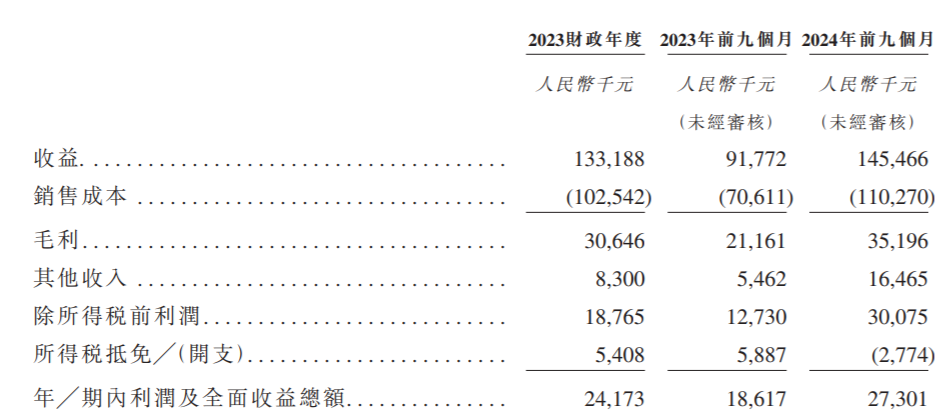 业绩方面,2023年及2024年前9个月,荣联再生科技收入为1.33亿元、1.45亿元,净利润0.24亿元、0.27亿元。