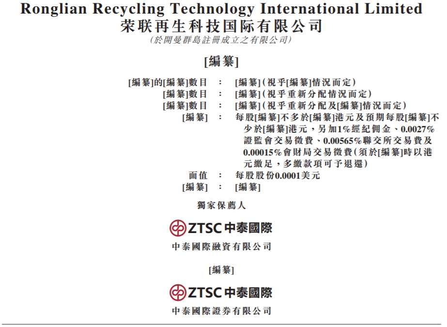 瑞财经 王敏 2月21日,据港交所官网,荣联再生科技国际有限公司(以下简称“荣联再生科技”)向港交所递交招股书,拟在香港GEM上市,独家保荐人是中泰国际。