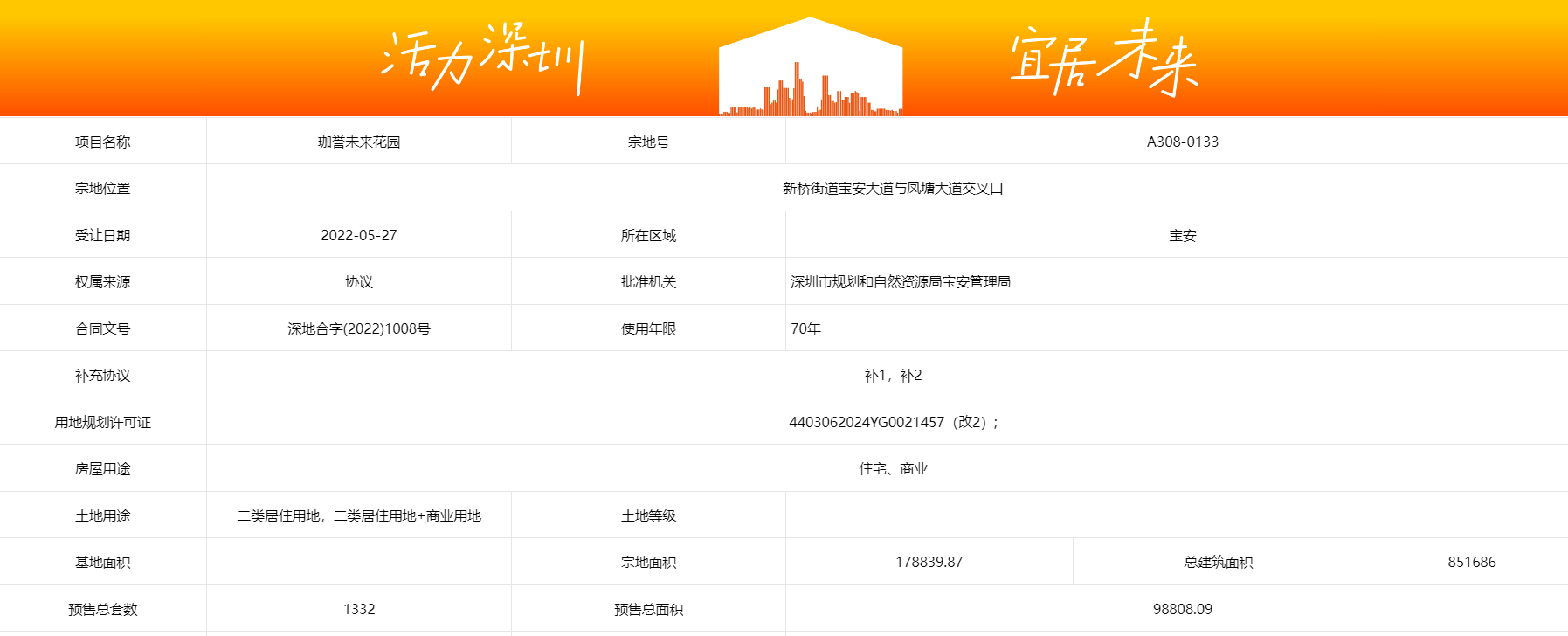 乐居财经 赵盼盼 据深圳市住建局,近日,鸿荣源珈誉府(备案名:珈誉未来花园)新领预售证,批准预售总套数1332套(均为共有产权房和商业),预售总面积98808.09㎡。
