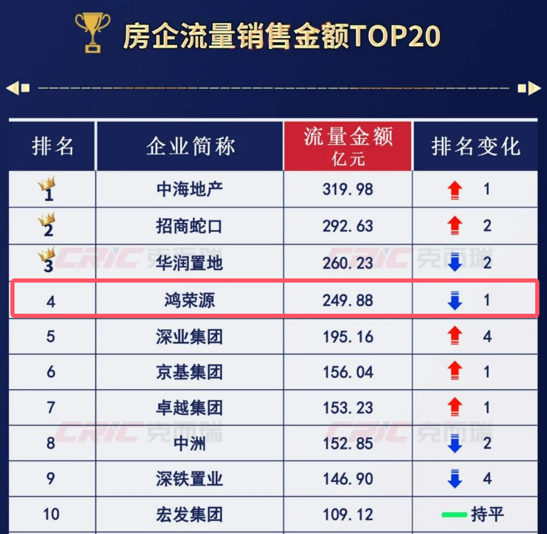 鸿荣源创立于1991年,是深圳的老牌房企,项目主要分布在宝安和龙华,且多以旧改项目为主。在克而瑞发布的《2024年1-12月深圳房企销售排行榜》中,鸿荣源以249.88亿元流量销售额排在榜单第四位,仅次于中海地产、招商蛇口和华润置地。