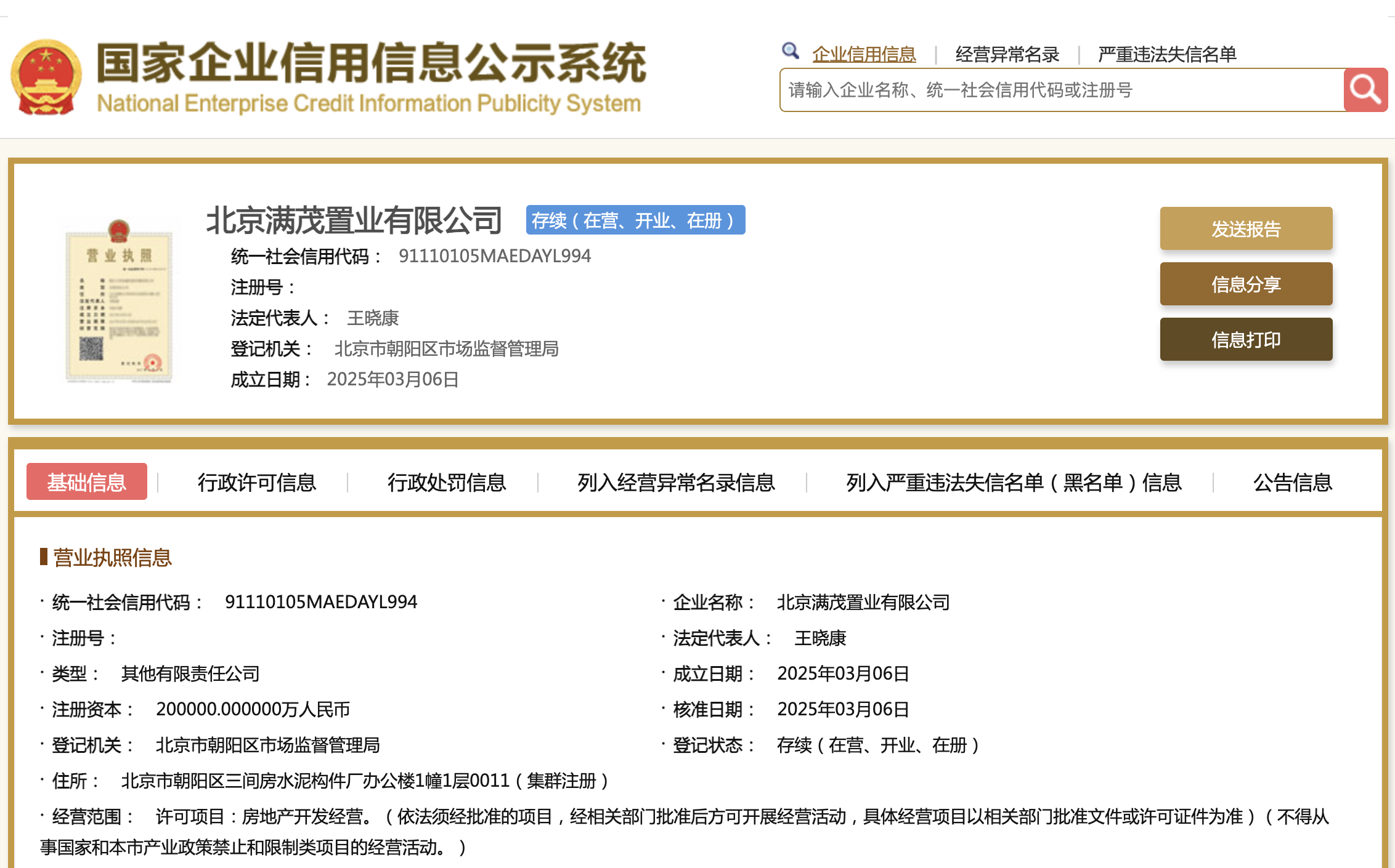 保利是在拿地前就已对三间房项目发出了招标计划,但至今尚未转为正式招标公告,当时的招标单位北京朝新善筑置业有限公司,目前也未注册成立。