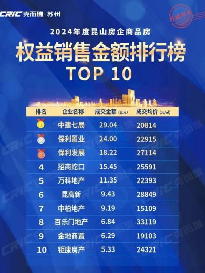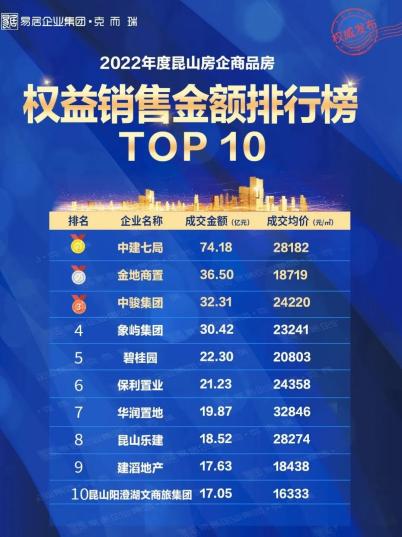强者从来用数据说话。2024年昆山房企商品房权益销售榜单中,中建七局地产集团荣膺金额、面积“双冠王”。