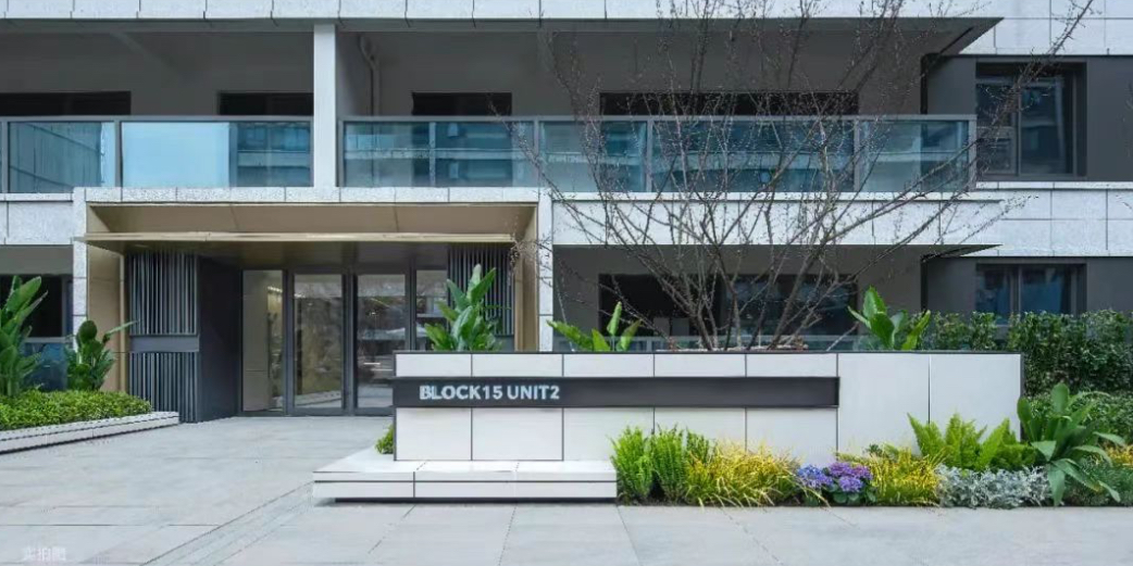 单元入口用矮墙搭配常绿植物、度假风花境,围合出院落式的入口空间,将社区共享空间、单元入户空间及室内入户大堂,营造出中式院落独有的三进式礼序。