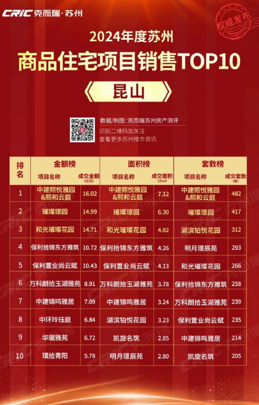 熙悦雅园&熙和云庭:2024年昆山商品住宅金额/面积/套数榜单三冠王